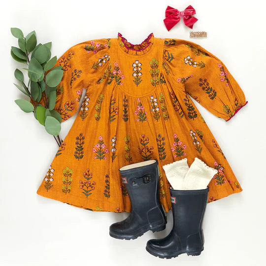 Girls Brayden Dress - Gold Field Floral