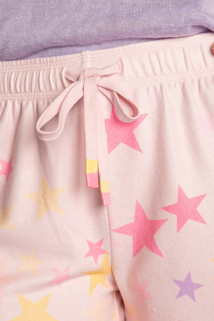The pullover hoody that wraps you up - with relaxed armholes and the comfiest fit. Designed in multi-star printed peachy - a new starry favorite. Model is 5' 10", wearing size small. Modern-day-milky-way. A classic, soft sleep short with comfy tie waist in a multi-star print. Model is 5' 10", wearing size small.