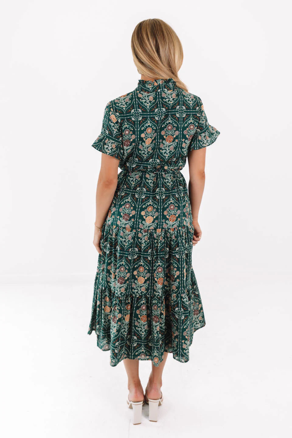 Regular price $126.99This charming hunter midi dress showcases a moody print and a flattering adjustable tie waist for a timeless, feminine look. The button-up neckline and short sleeves add a classic touch, making it effortlessly polished. With its warm tones and easy silhouette, it’s the perfect piece for fall outings or brunch dates.