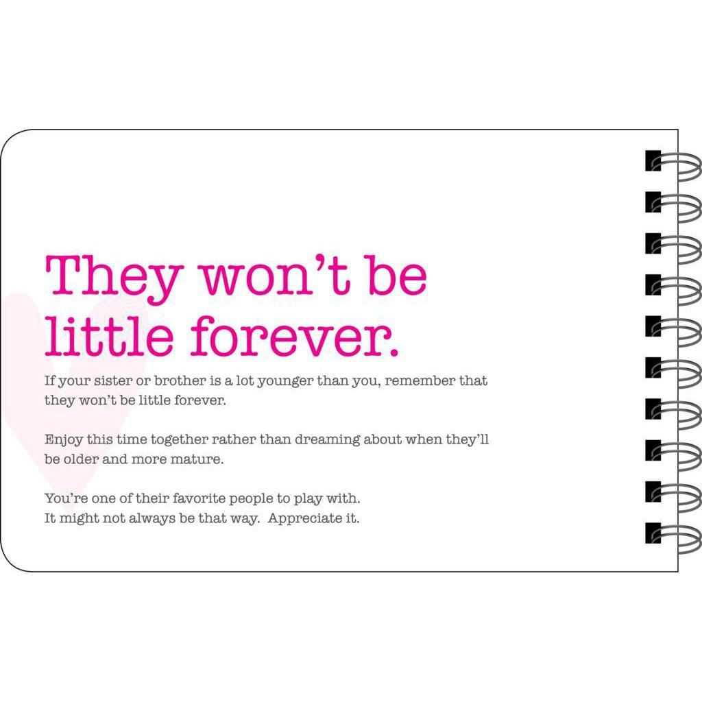 Being a Big Sister helps girls of all ages settle into their role as the older sibling. It includes reminders like being a good role model, staying patient and encouraging your little brother or sister.