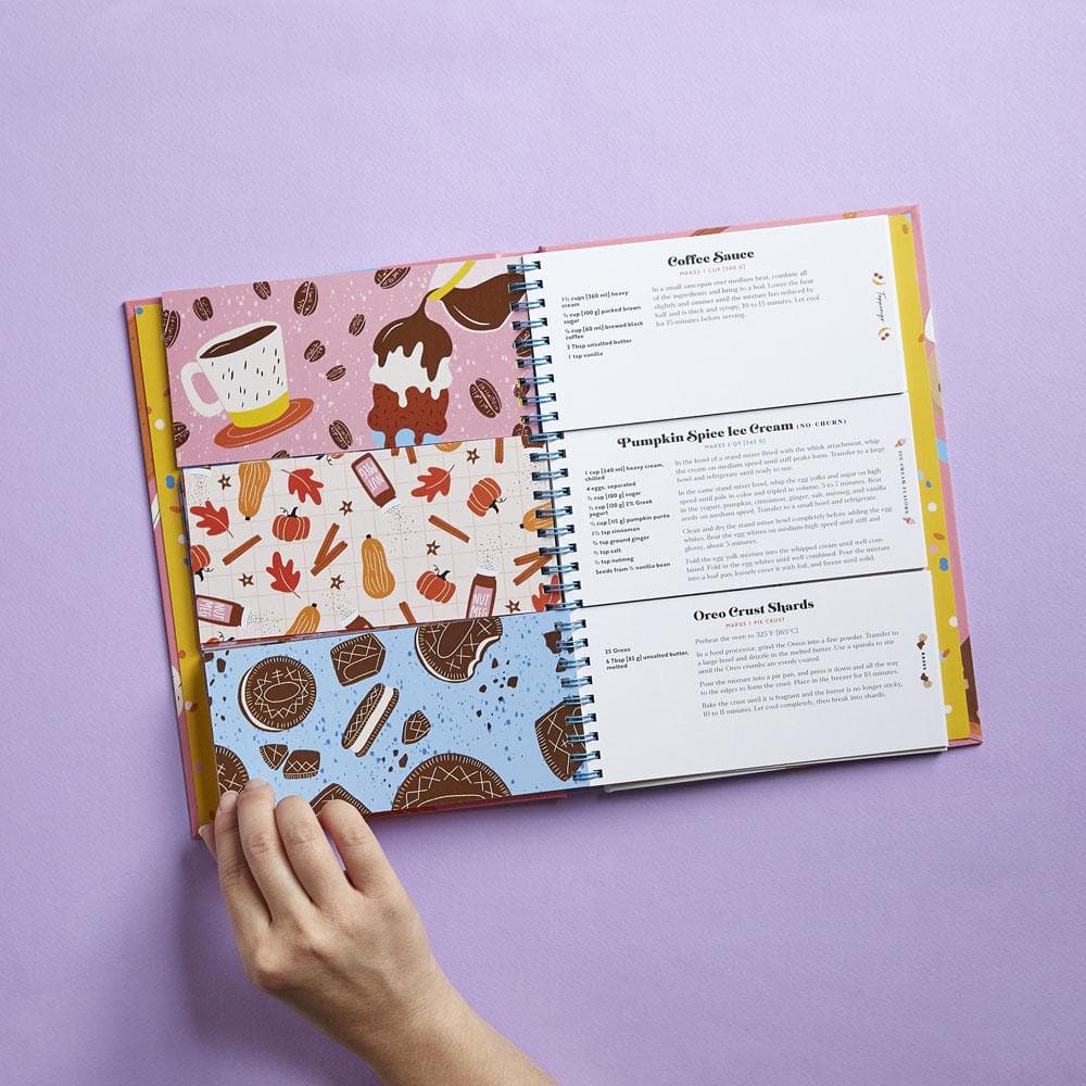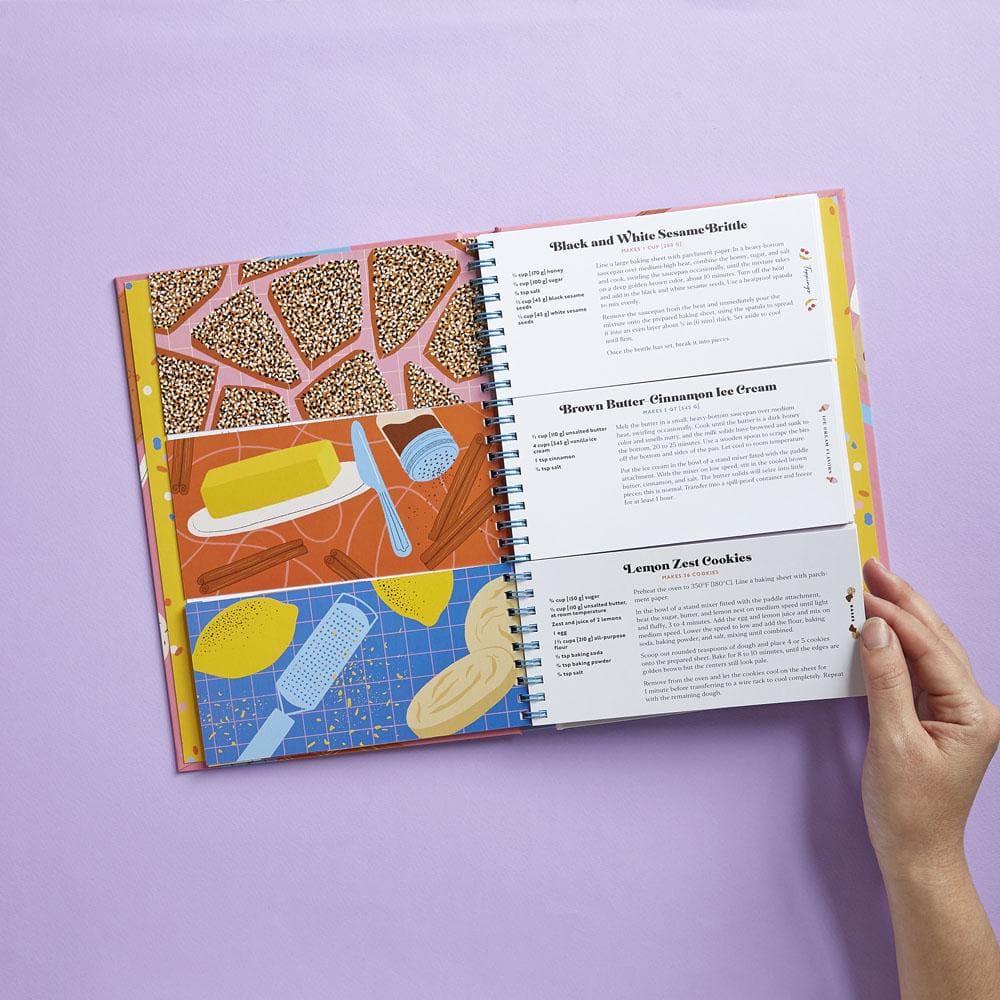 Each page is divided into thirds, making it easy to flip around and create a perfect combination for any moment. Featuring bright and colorful illustrations, and both classic and new flavors, including Coffee Toffee Ice Cream, Spiced Hot Fudge Sauce, Black and White Sesame Brittle, Cocoa Nib-Candied Ginger Ice Cream, and Buckwheat Brownies, there's something to satisfy every sweet tooth.