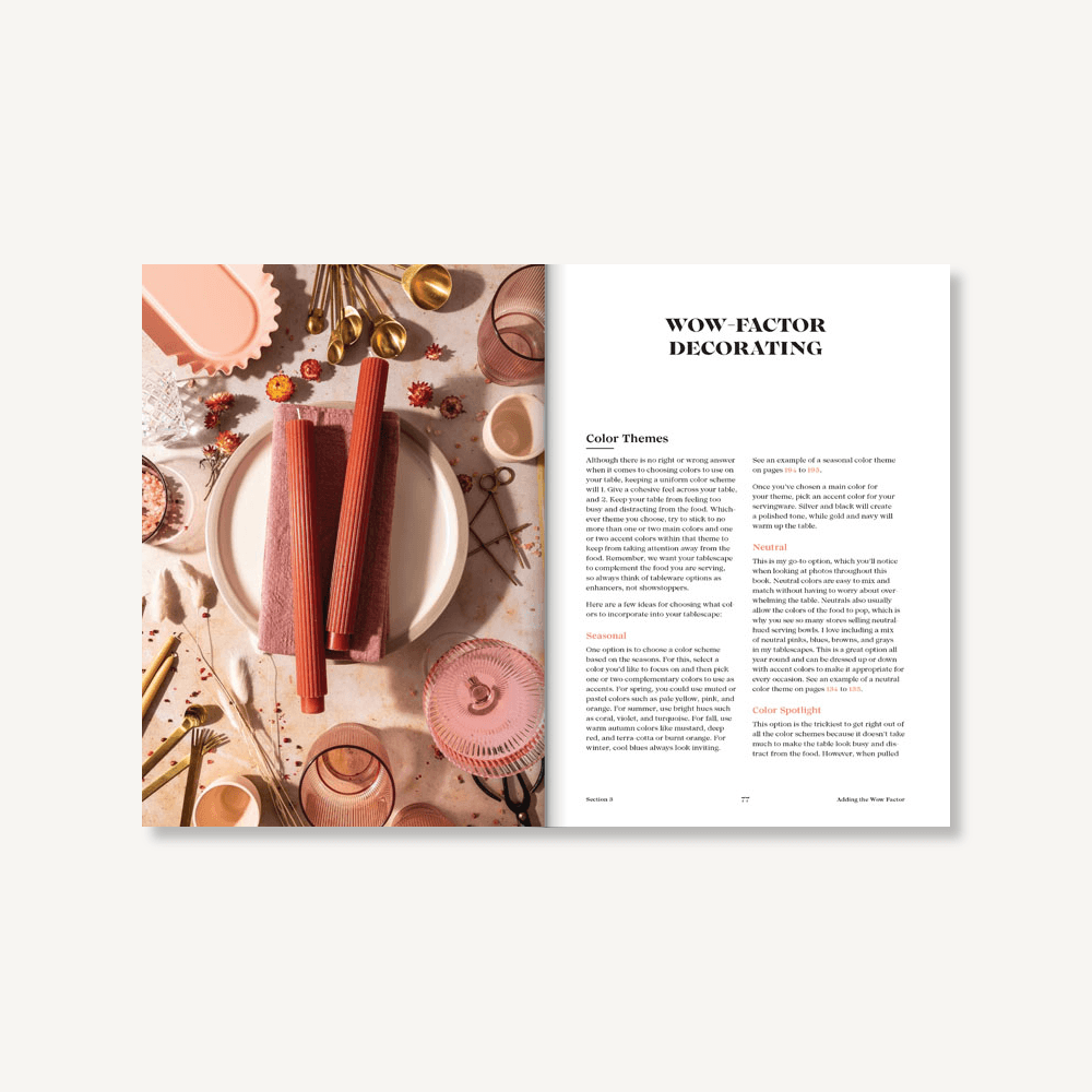 - ON TREND: The simple but impactful guidelines in this book speak to the way people are eating and entertaining today—often casually, with beautiful presentation, and a "help yourself" mentality. This book teaches us how to do that elegantly and create gorgeous grazing tables whether you're preparing a "snack dinner" for one, a family brunch, or a large-scale wedding or holiday table.