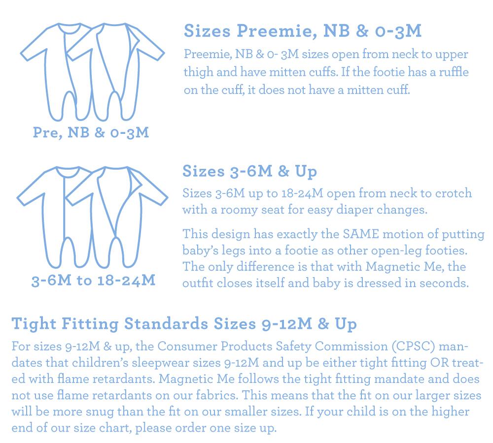 Our super silky soft and eco-friendly Magnetic Modal Footie, featuring our time-saving magnetic fasteners, gets baby dressed faster than Clark Kent turns into Superman! No longer dread night changings simply open outfit, insert baby and the outfit practically dresses itself! Perfect gift for new parents and a must-have staple for every baby's wardrobe. Pack a spare in the diaper bag for on-the-go changes. Modal is certified as a 100% Bio-based fabric by the US Department of Agriculture, responsibly farmed from Beechnut trees.*NB & 3M sizes open from neck to upper thigh and have mitten cuffs. *6M-24M sizes open from neck to crotch with a roomy seat for easy diaper changes. *9-12M sizes & up follow tight-fitting standards and are meant to be snug. Order one size up if your child is on the mid to high end of our size chart.
