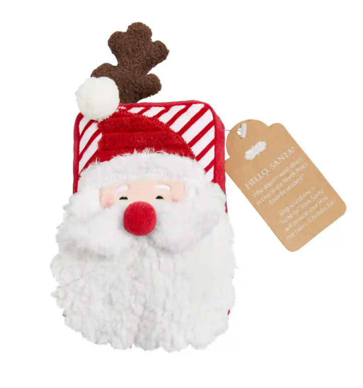 Say Hello Santa with our plush Santa phone. The minky plush cell phone "rings" from the North Pole and Santa says "ho ho ho" when answered. Who doesn't want direct access to the North Pole's favorite resident? This cute phone will provide your little one hours of holiday fun.