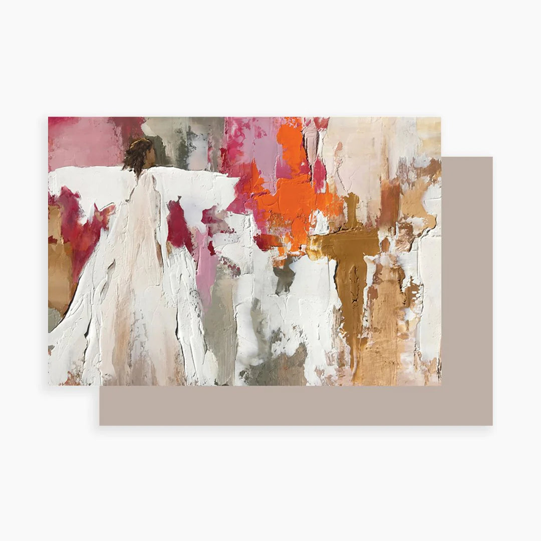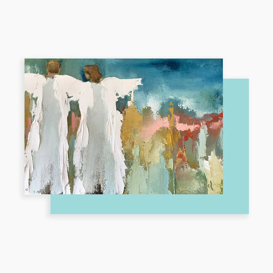 Each insert is double-sided with an original angel painting on one side and a solid color on the other. The bottom slides out allowing you to easily change out the insert.