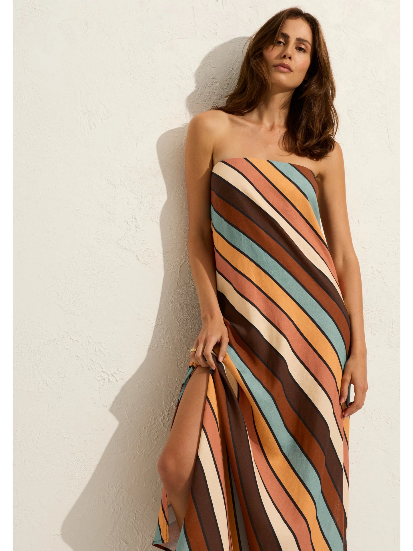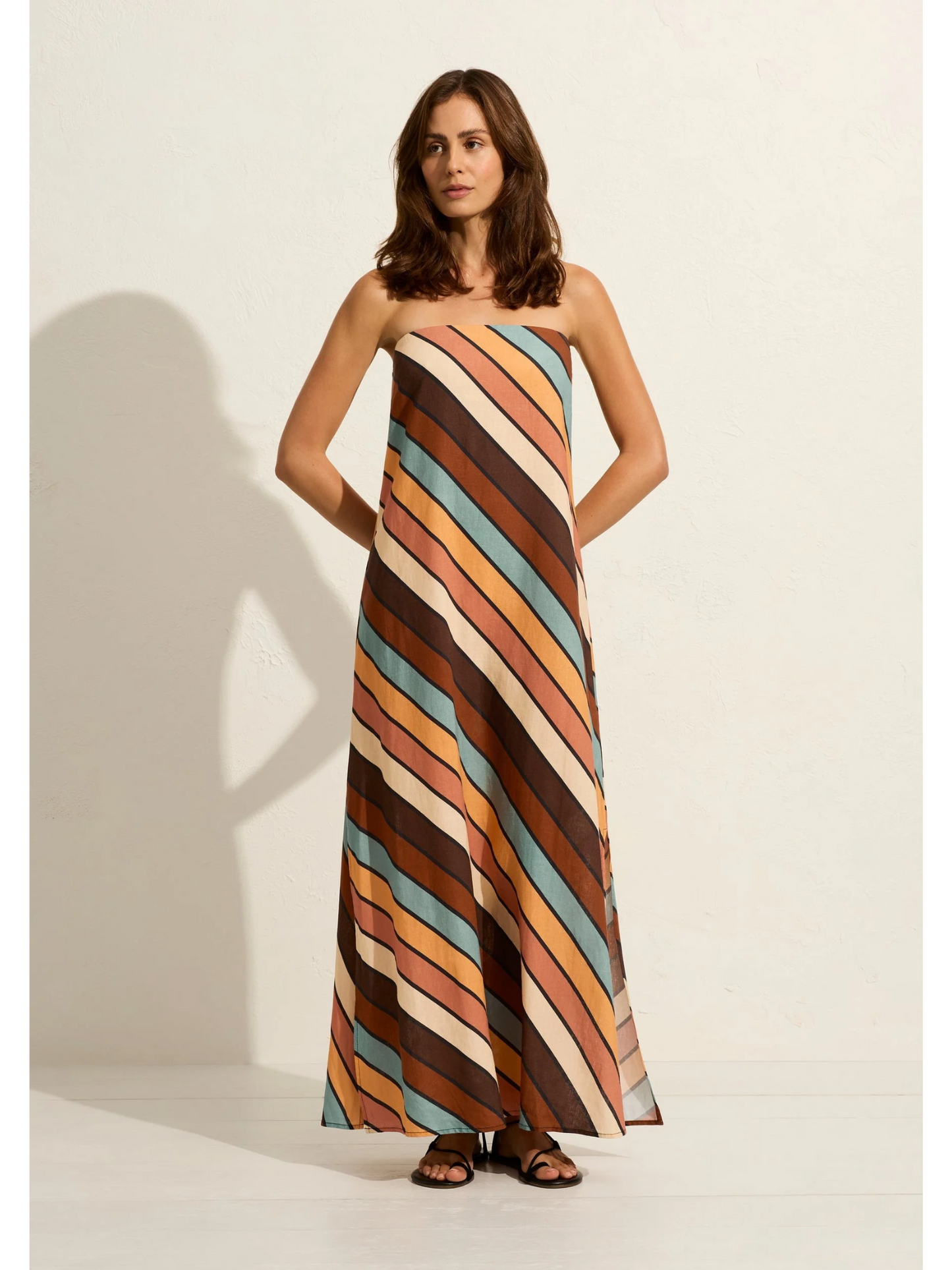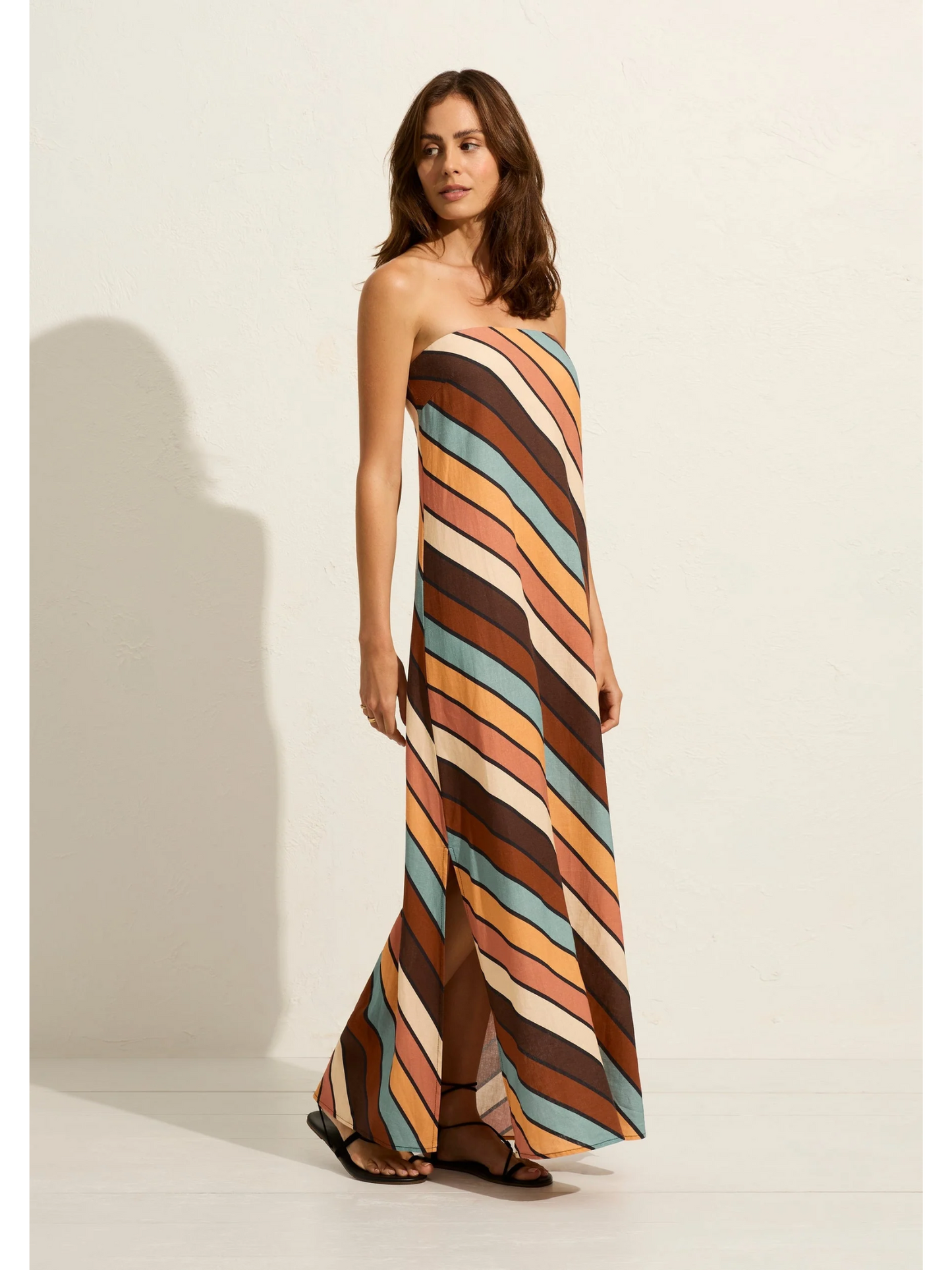 The simple and glamorous Tyria Maxi Dress in our brand-new Cicely Stripe is a head-turner. The elegant straight neckline drapes perfectly into a loose-fitting silhouette with side splits and optional, removable straps.