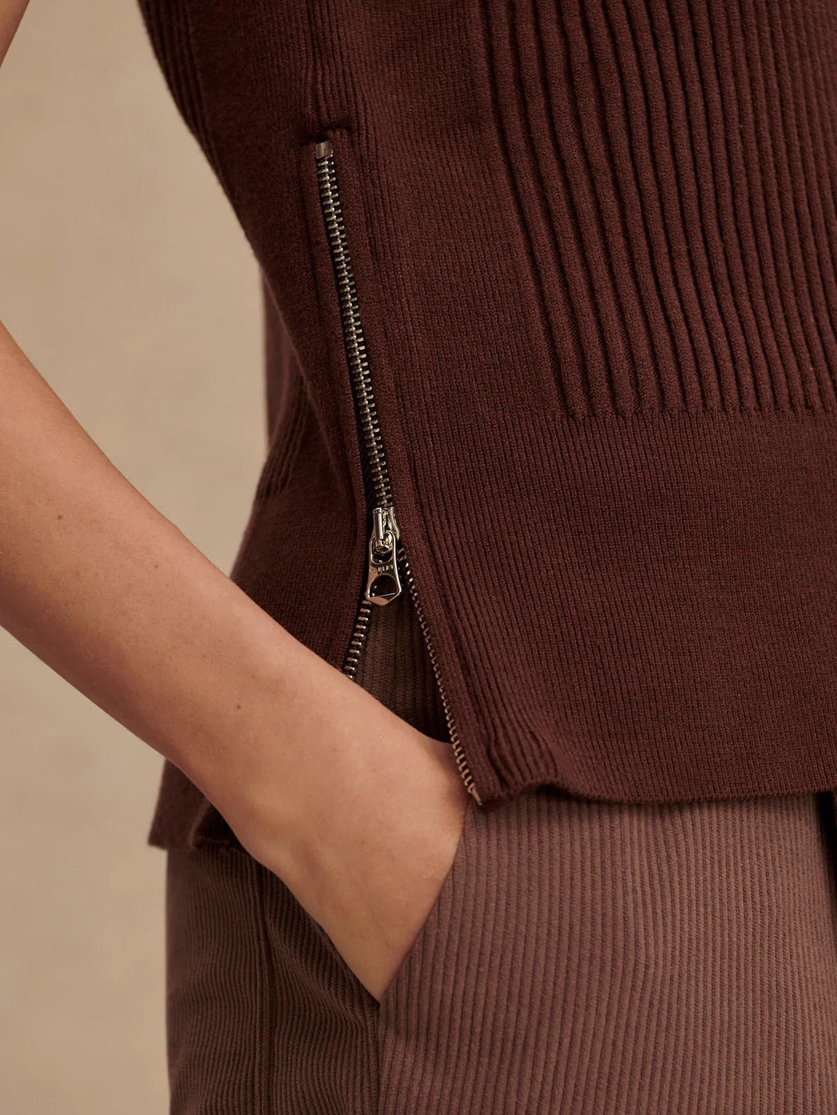 Designed in an easy silhouette, this tank features a high neckline and functional side seam zips. Made from our Soft Rib Knit with ribbed panelling, it's perfect for effortless layering or wearing solo throughout the seasons.