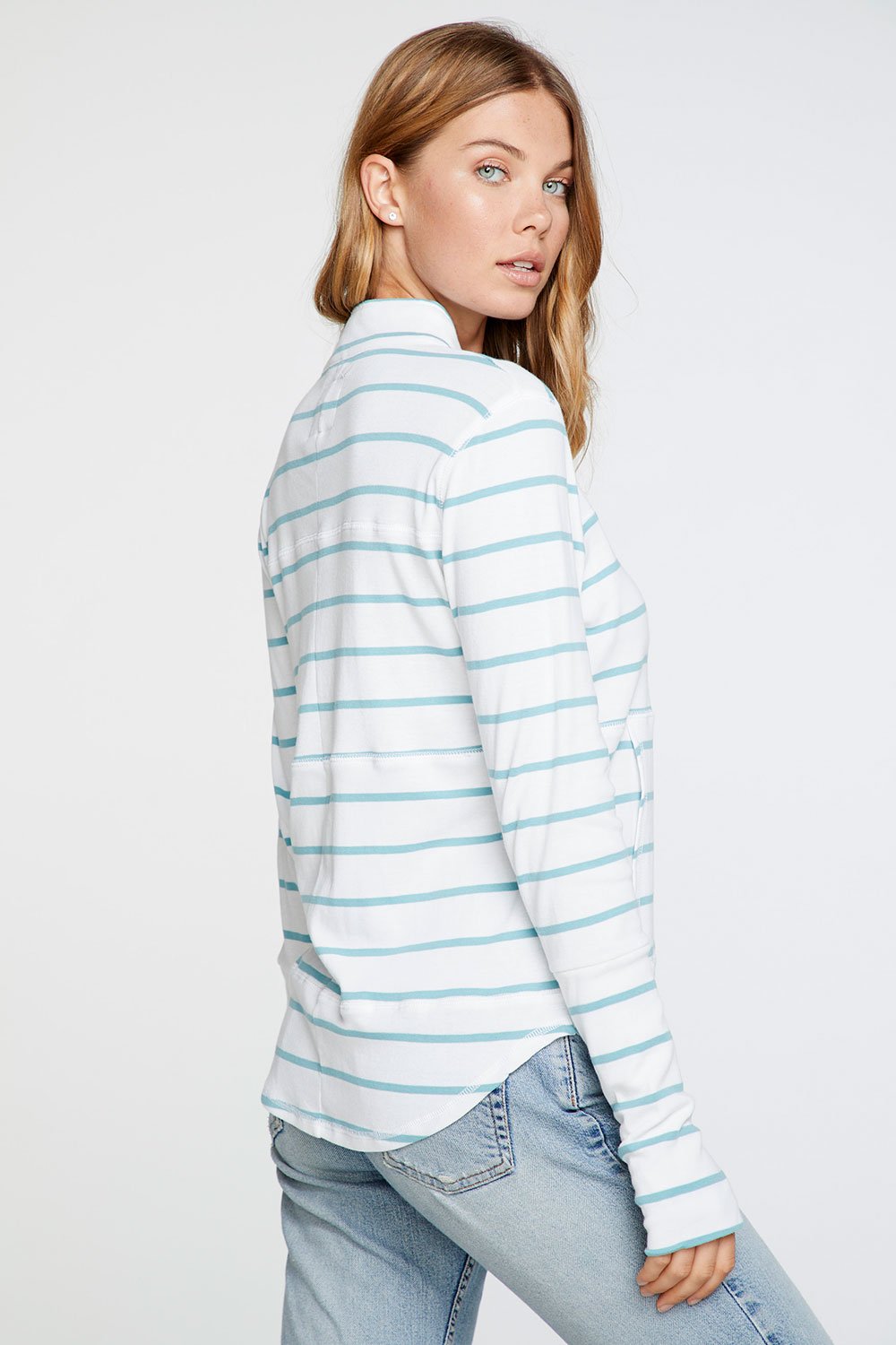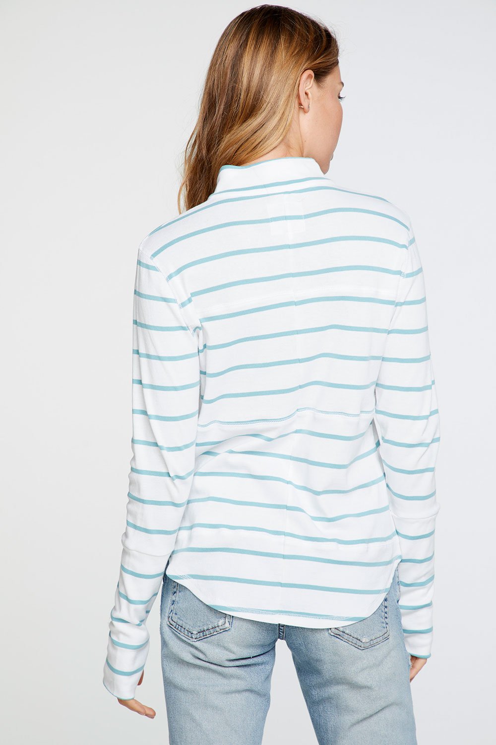 Chaser - Baby Rib Mock Neck Long Sleeve Thumbhole Jacket in Stripe