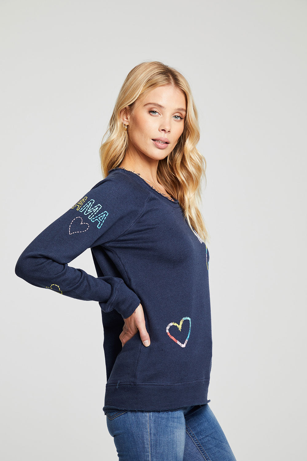 Our Mom Love linen French terry raglan pullover makes your parental pride clear.