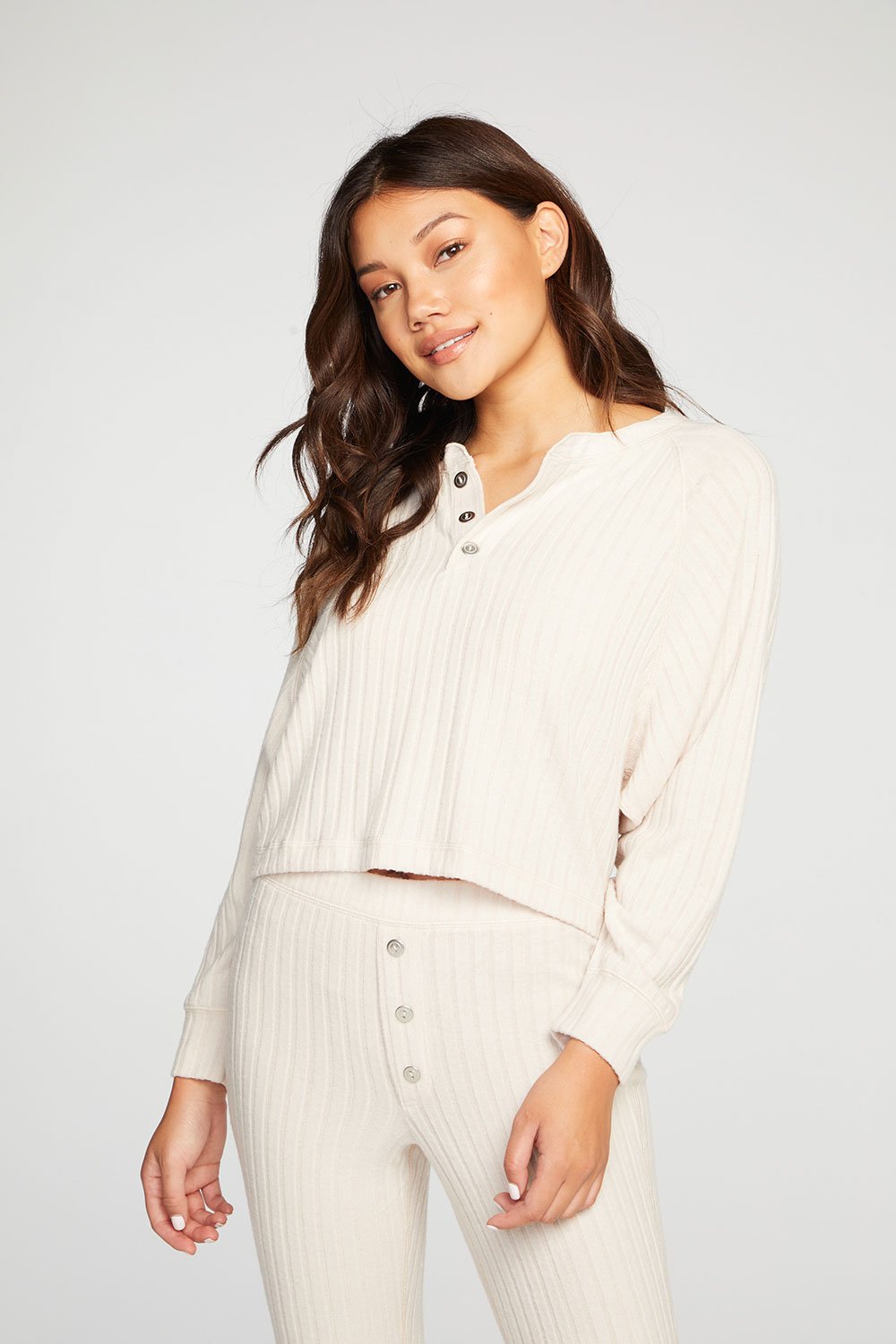 Chaser Poor Boy Rib Long Sleeve Raglan Henley