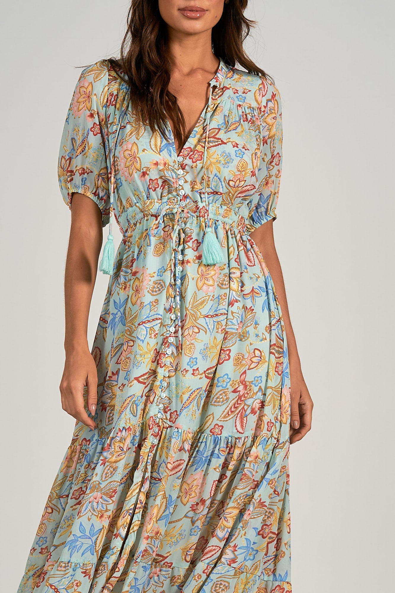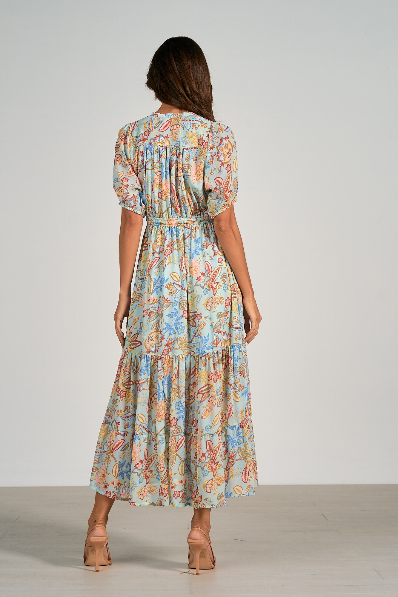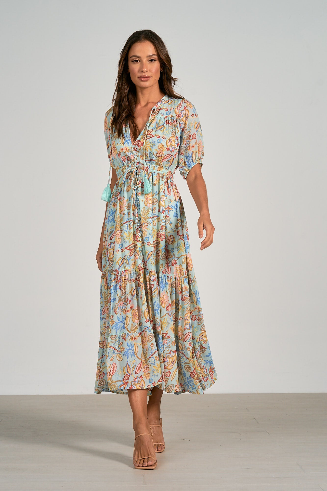 Our beloved dress is sweet and romantic for any spring day. Maxi length, mid-sleeves and a flattering v-neckline for an effortless look. Style with heels or booties.