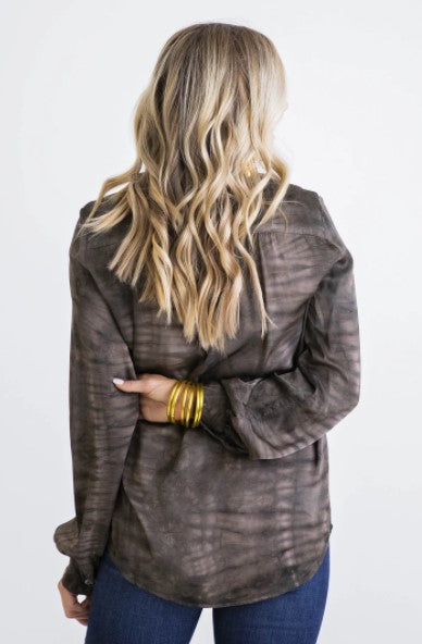 Karlie, Women - Shirts & Tops,  Brown Tie Dye Button Down Top