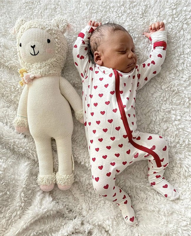 Kickee Pants Print Footie with Zipper in Natural Hearts