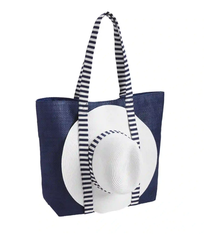 Mud Pie Tote Bag and Sun Hat Set