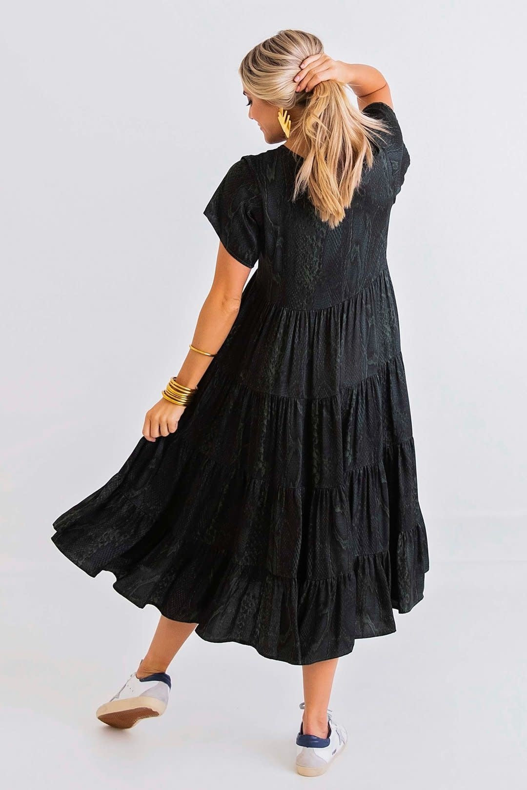 Karlie Snake Tiered Midi Dress - Eden Lifestyle