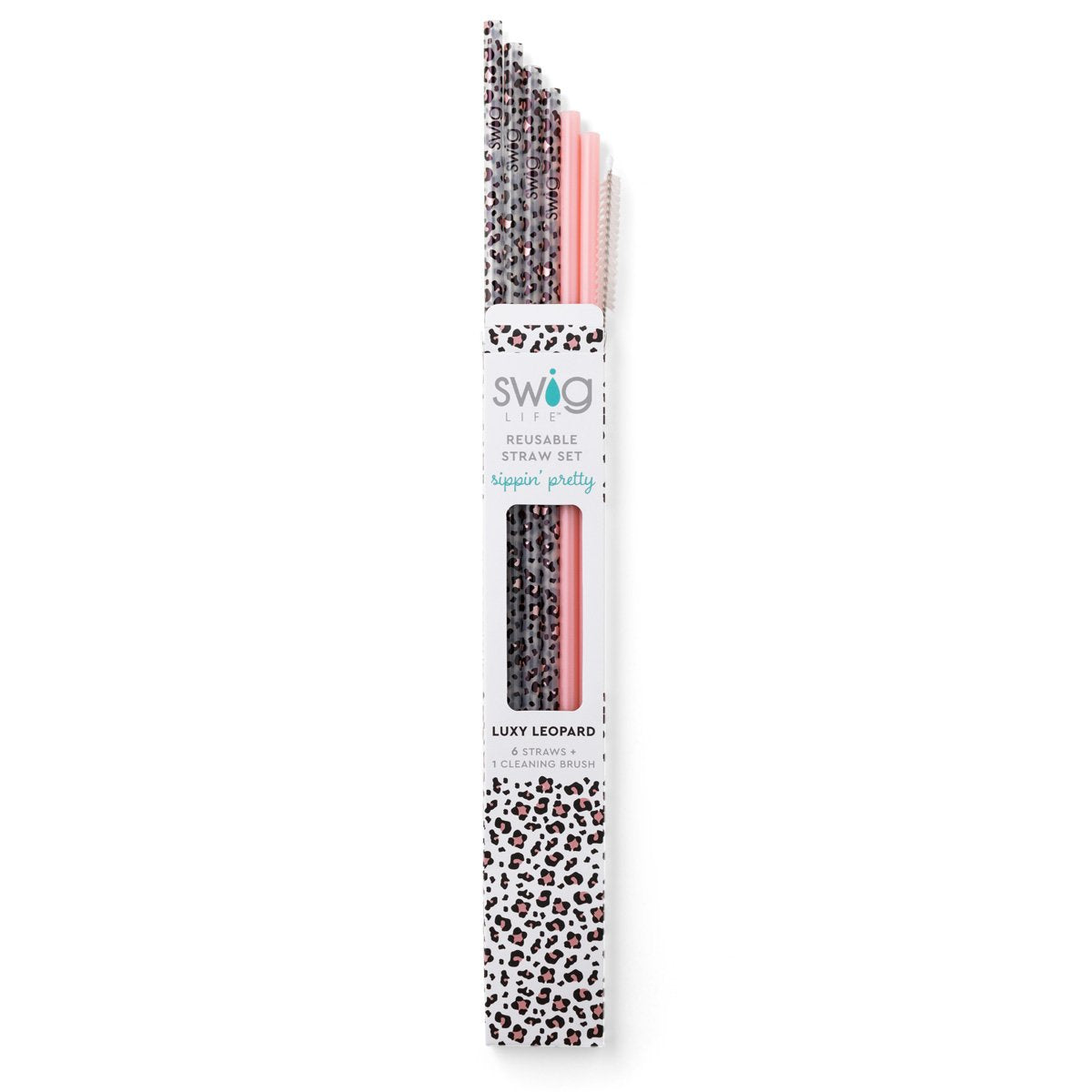 Swig Luxy Leopard + Blush Reusable Straw Set (Tall) - Eden Lifestyle