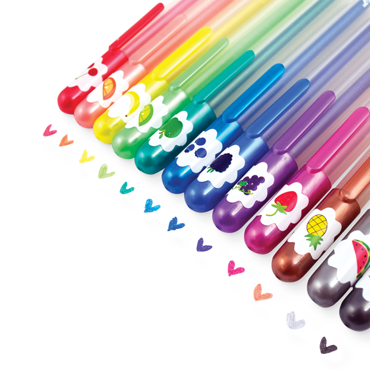 Make your art dazzle and experience the fragrant scents as you create. Each color sparkles with glitter and is scented with lime, banana, orange, cherry, strawberry, grape, green apple, blackberry, blueberry, watermelon, coconut, or pineapple. This fruity fantastic set will add a vibrant dash of color and bling to any masterpiece.